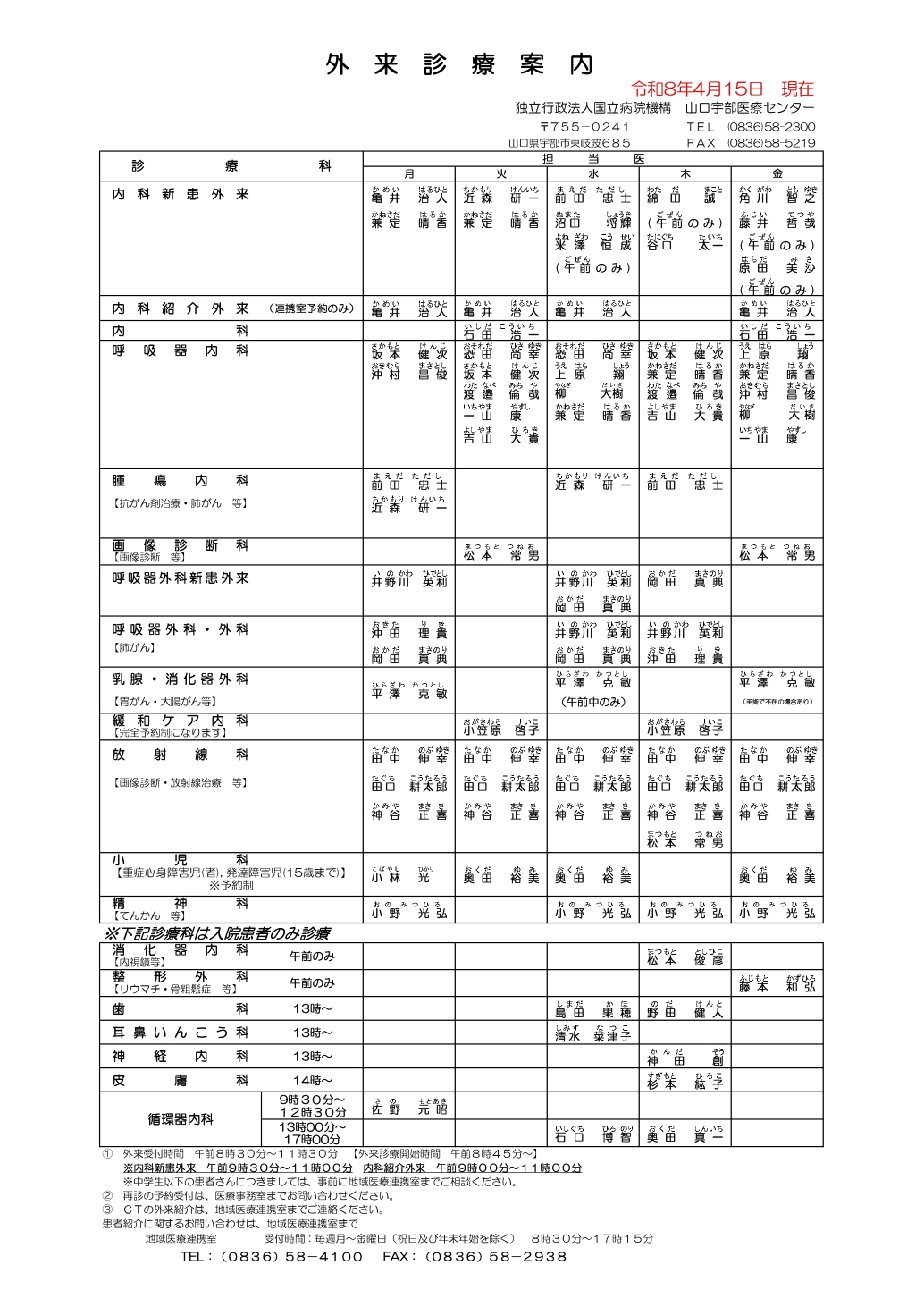 | 外来診察開始時間 | 8時45分~ |